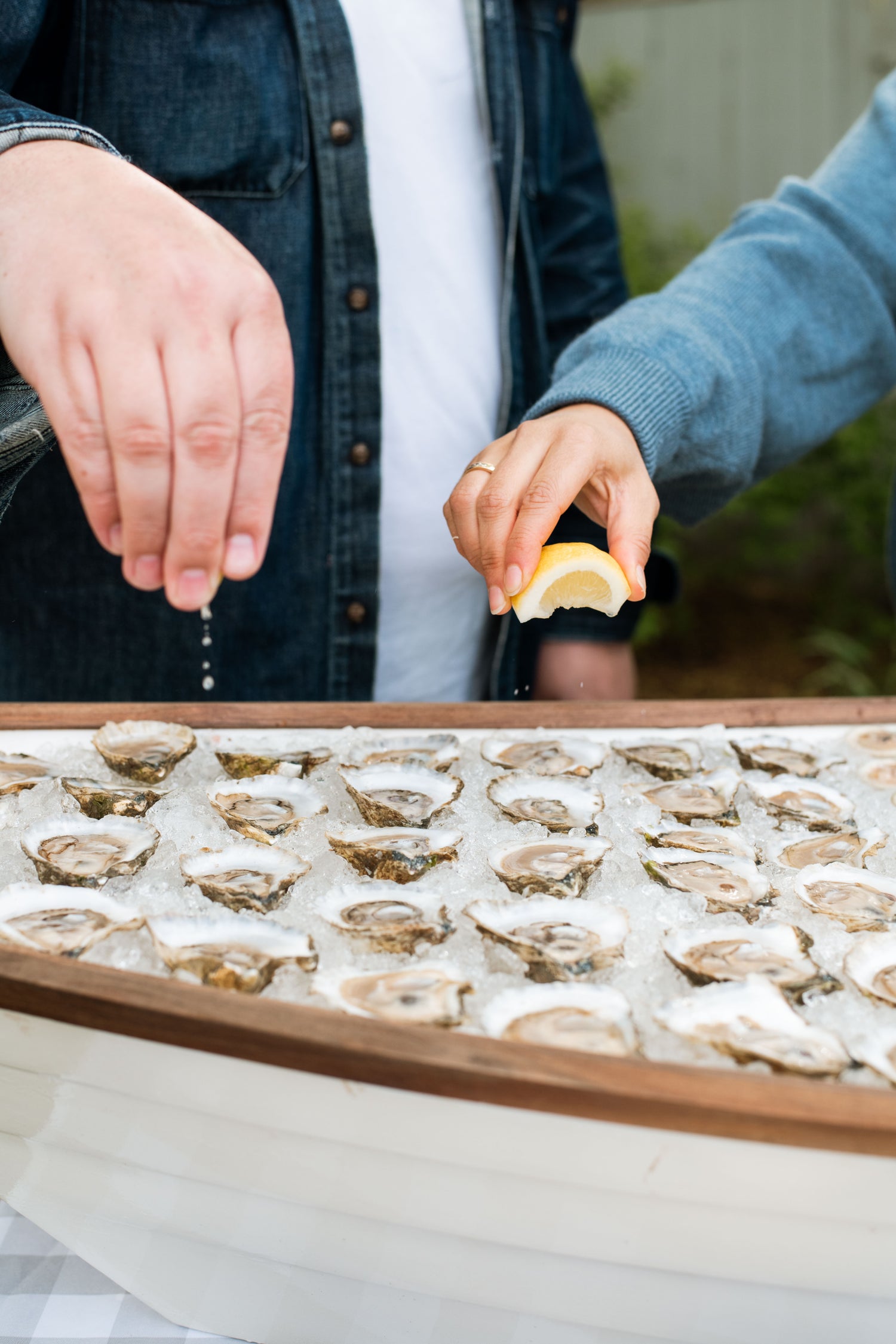 WHAT TO EXPECT: For your event, we will provide our signature dory boat display, ice, supplies for shucking, sauces, friendly staff and product. Our crew of experienced shuckers will set up the boat, fill it with crushed ice, cover it with the freshest seafood, and shuck away while chatting with guests in a casual, Island Creek kind of way for an unforgettable raw bar experience. Many of our shuckers also work the farm so come with questions and expect amusing answers! Delicious, New England seafood at your guests’ fingertips with none of the hassle and all of the enjoyment.