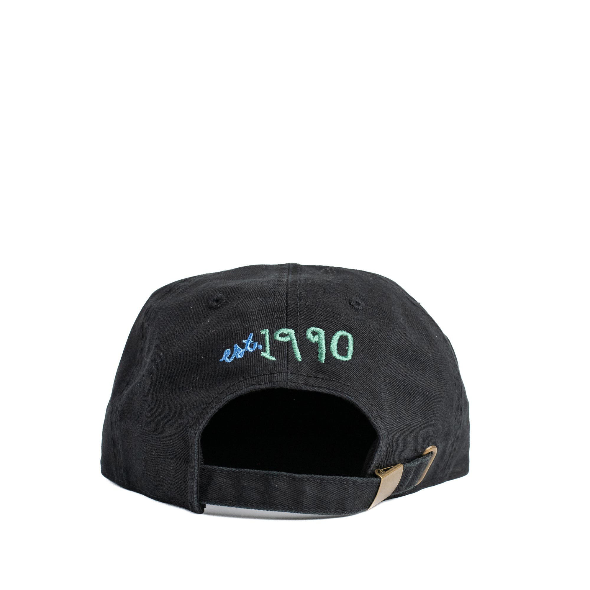 The Details: Color - Black. 5.5-panel, unstructured. Embroidered. "Est. 1990" rear center. Unisex. One size fits most. Adjustable back. 100% Cotton. Hand wash or spot clean.