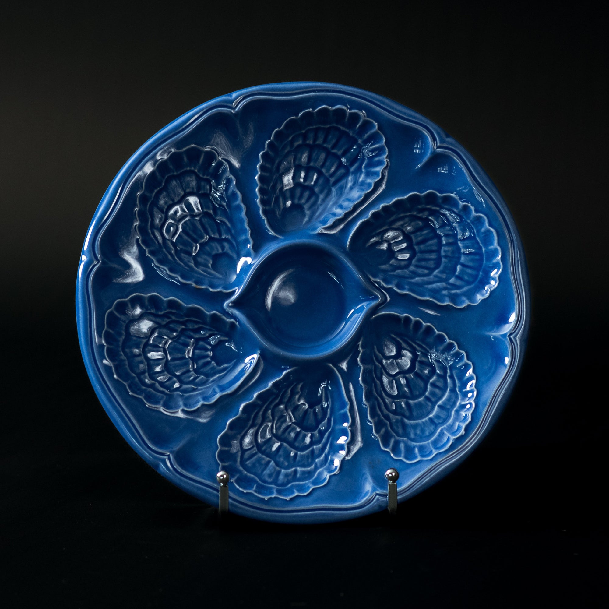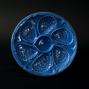 The Details: Vintage Blue Majolica Ceramic Oyster Plate - French